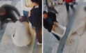 Genç kadın kaldırımda oturduğu sırada kabusu yaşadı! Esnaf caniye meyve kasasıyla müdahale etti