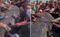Gazze’de yaklaşık 10 metre uzunluğundaki dev balık karaya vurdu
