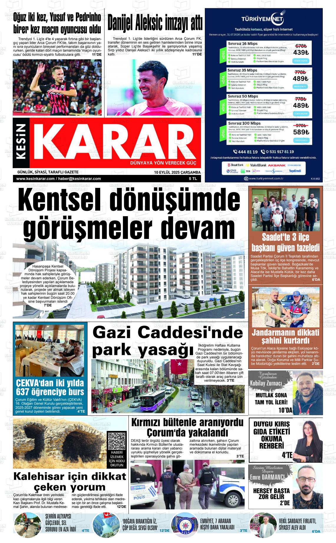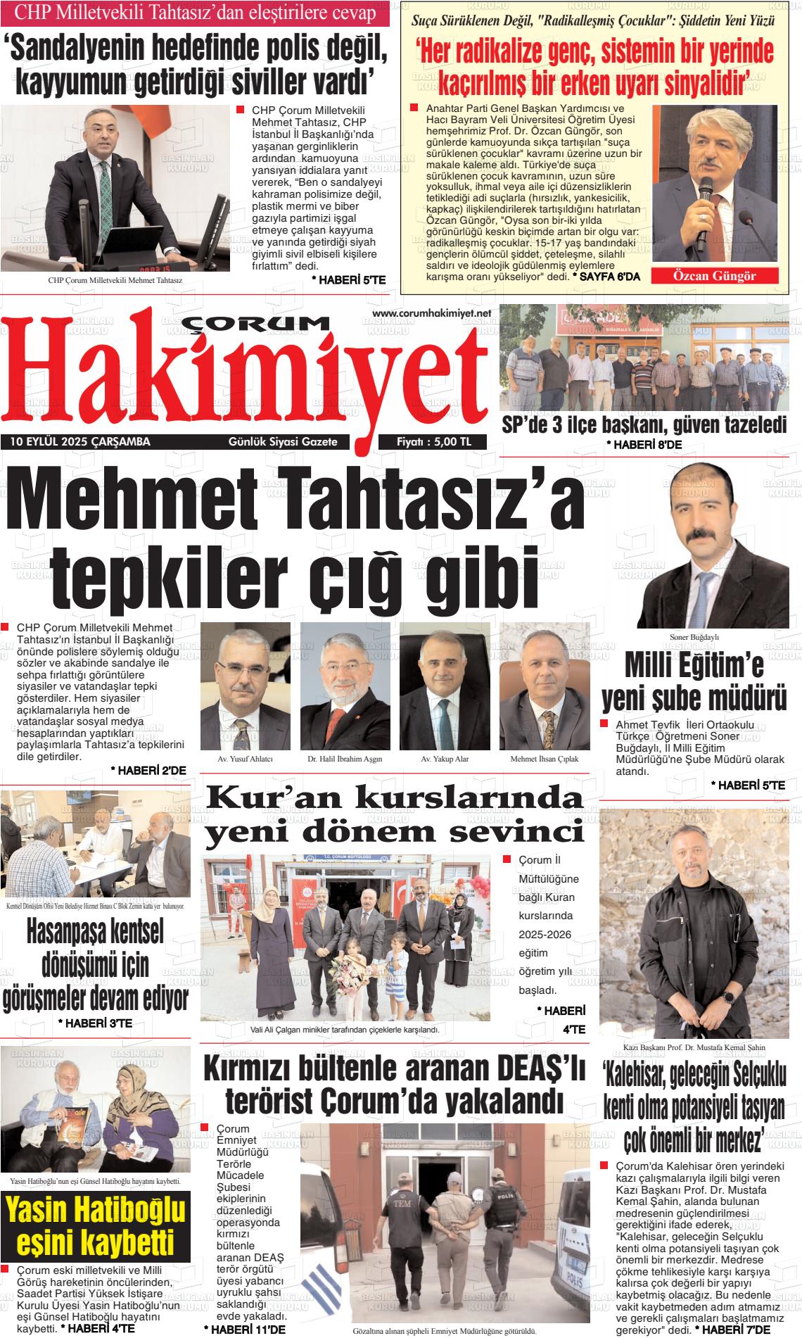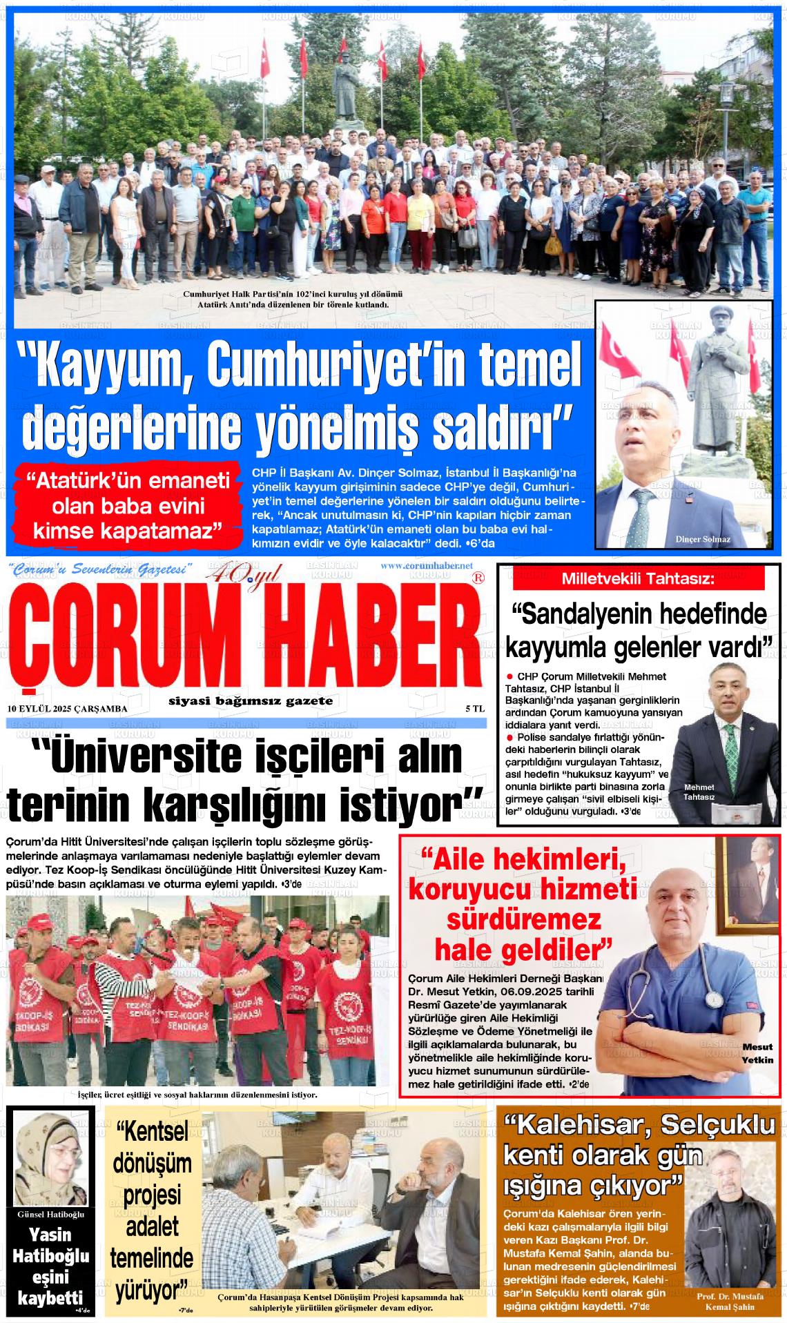Çorum Yerel Gazeteleri 29 Ocak 2026, Perşembe Günü Manşeti