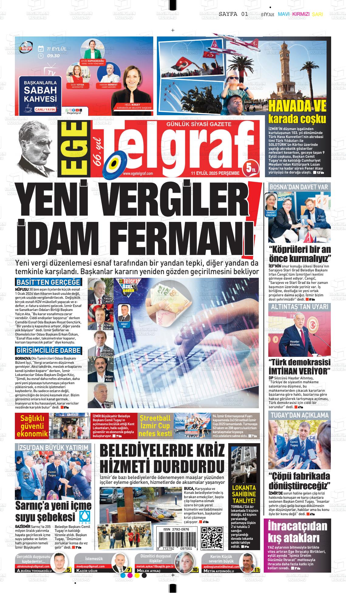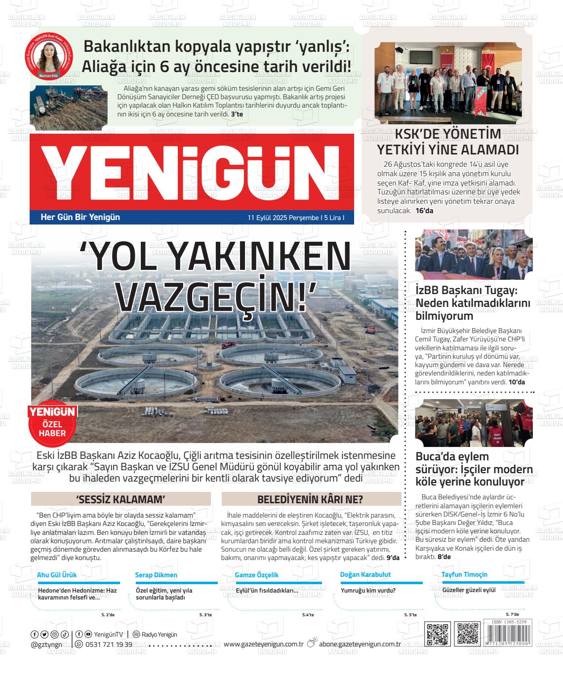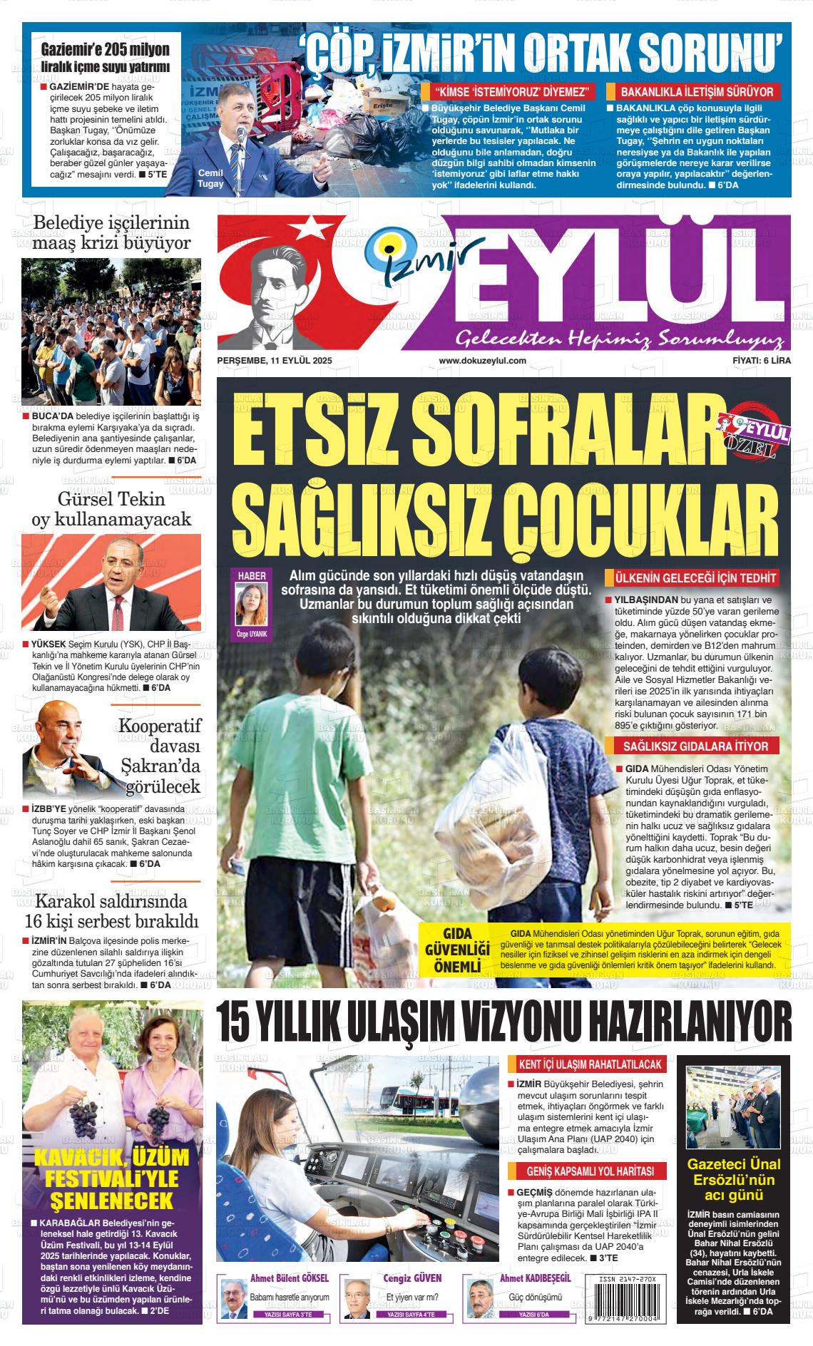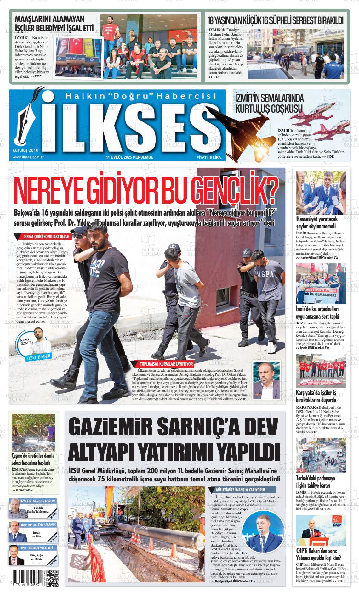 İzmİr Yerel Gazeteleri 13 Kasım 2025, Perşembe Günü Manşeti