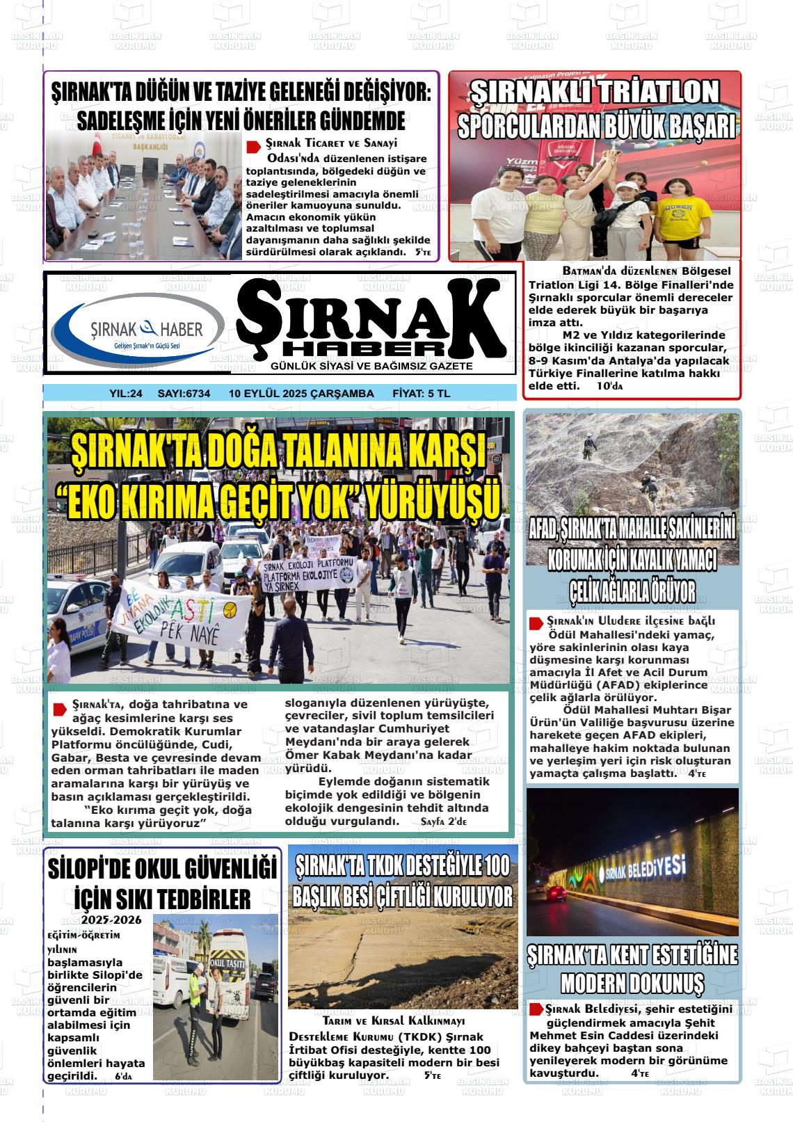 Şırnak Yerel Gazeteleri 31 Ocak 2026, Cumartesi Günü Manşeti