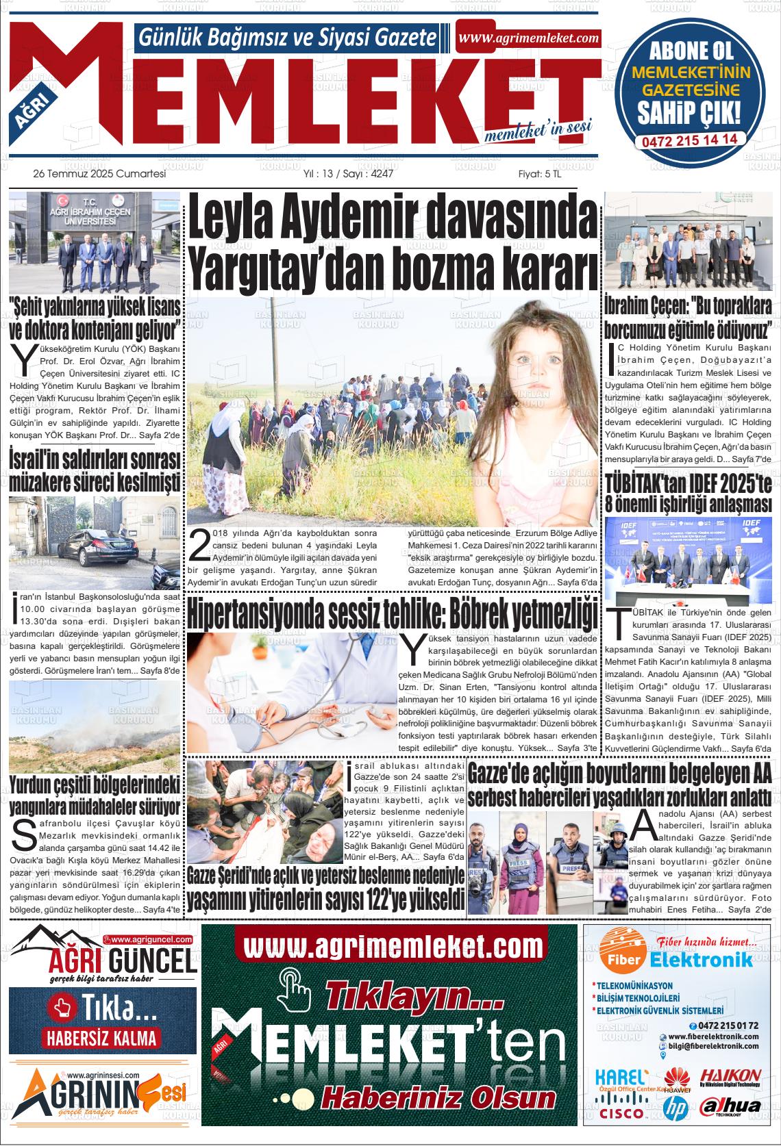 Ağrı Yerel Gazeteleri 13 Kasım 2025, Perşembe Günü Manşeti