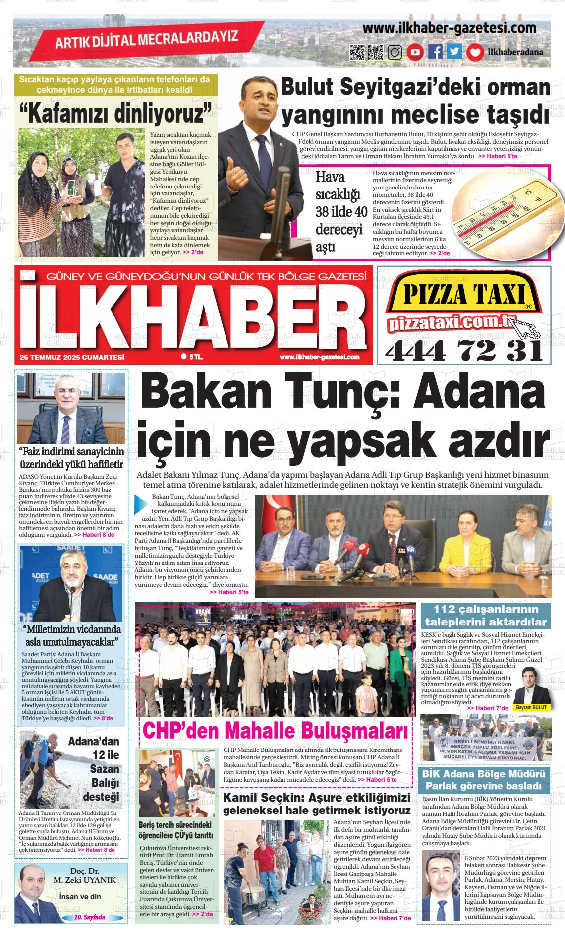 Adana Yerel Gazeteleri 13 Kasım 2025, Perşembe Günü Manşeti
