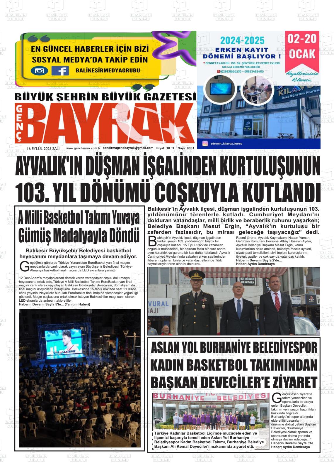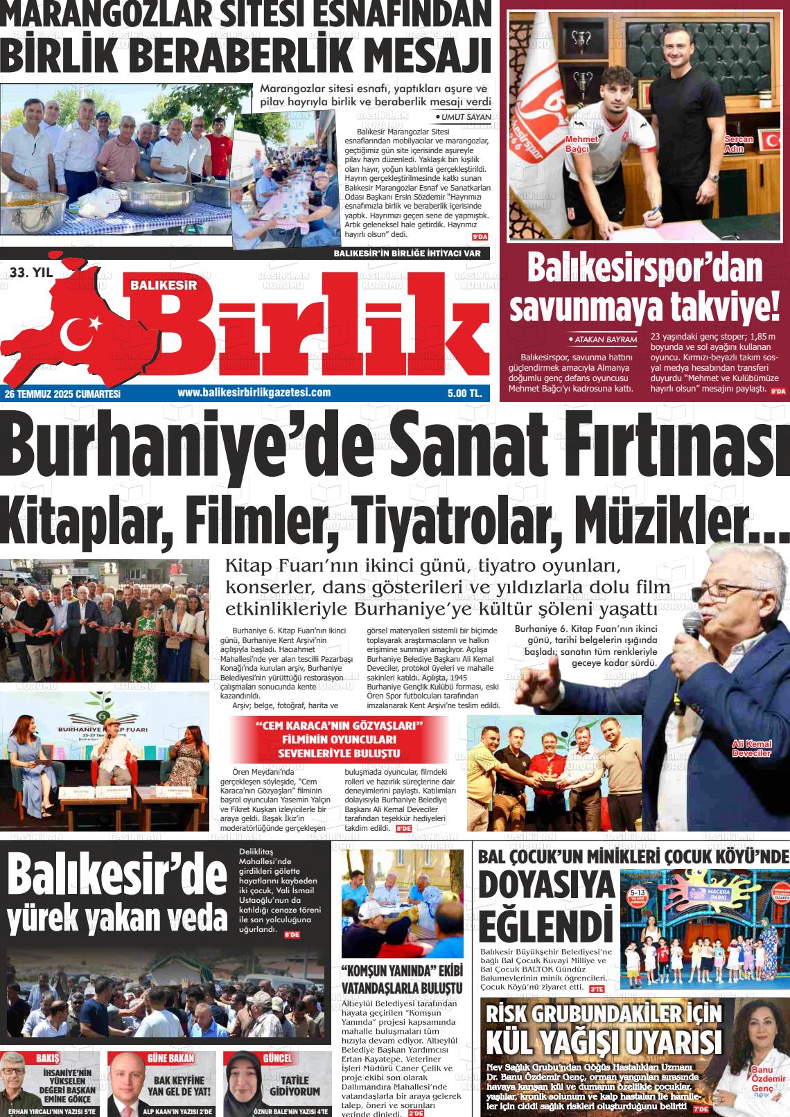 Balıkesİr Yerel Gazeteleri 13 Kasım 2025, Perşembe Günü Manşeti