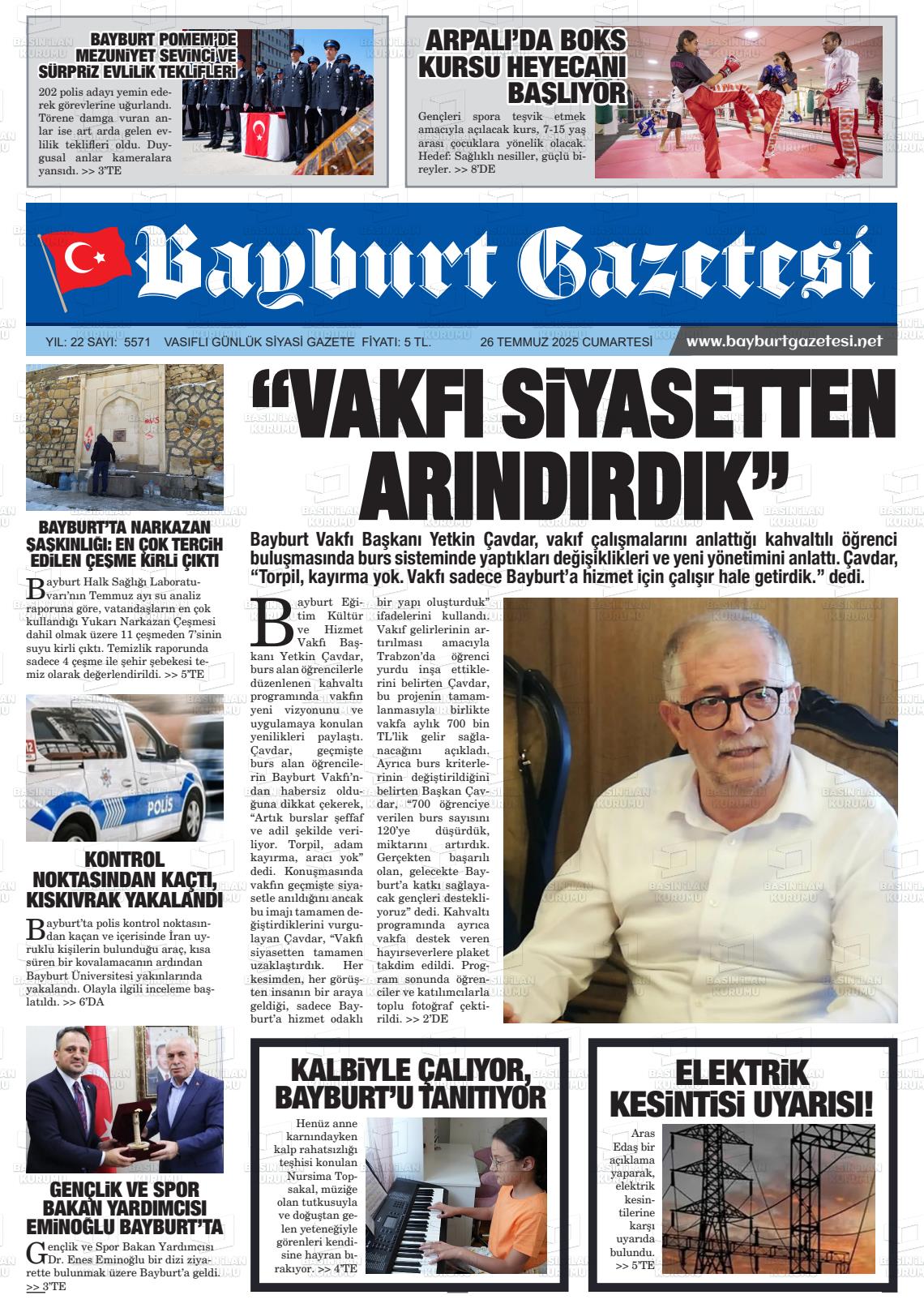 Bayburt Yerel Gazeteleri 29 Ocak 2026, Perşembe Günü Manşeti