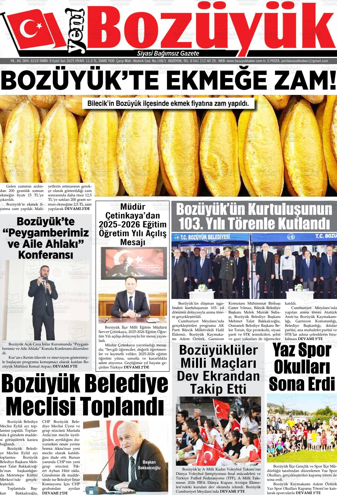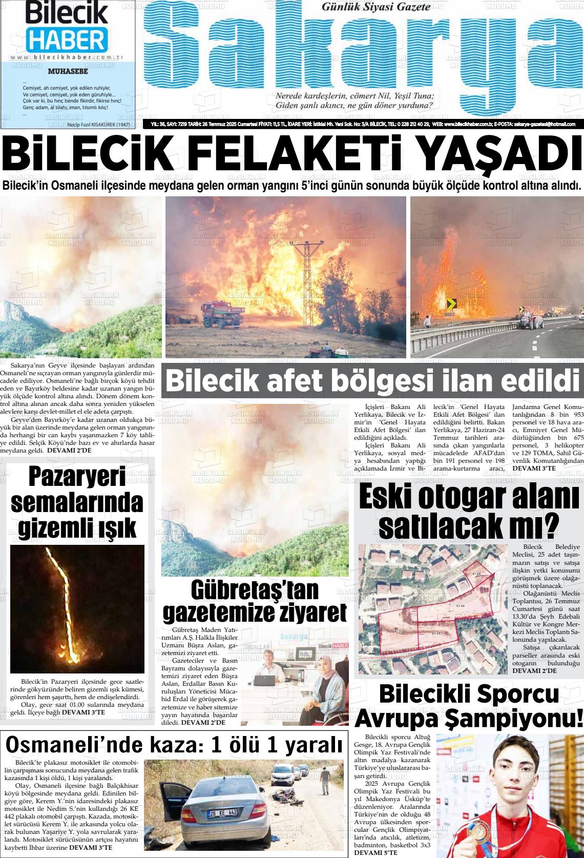 Bİlecİk Yerel Gazeteleri 13 Kasım 2025, Perşembe Günü Manşeti