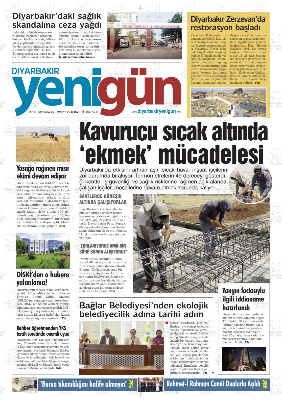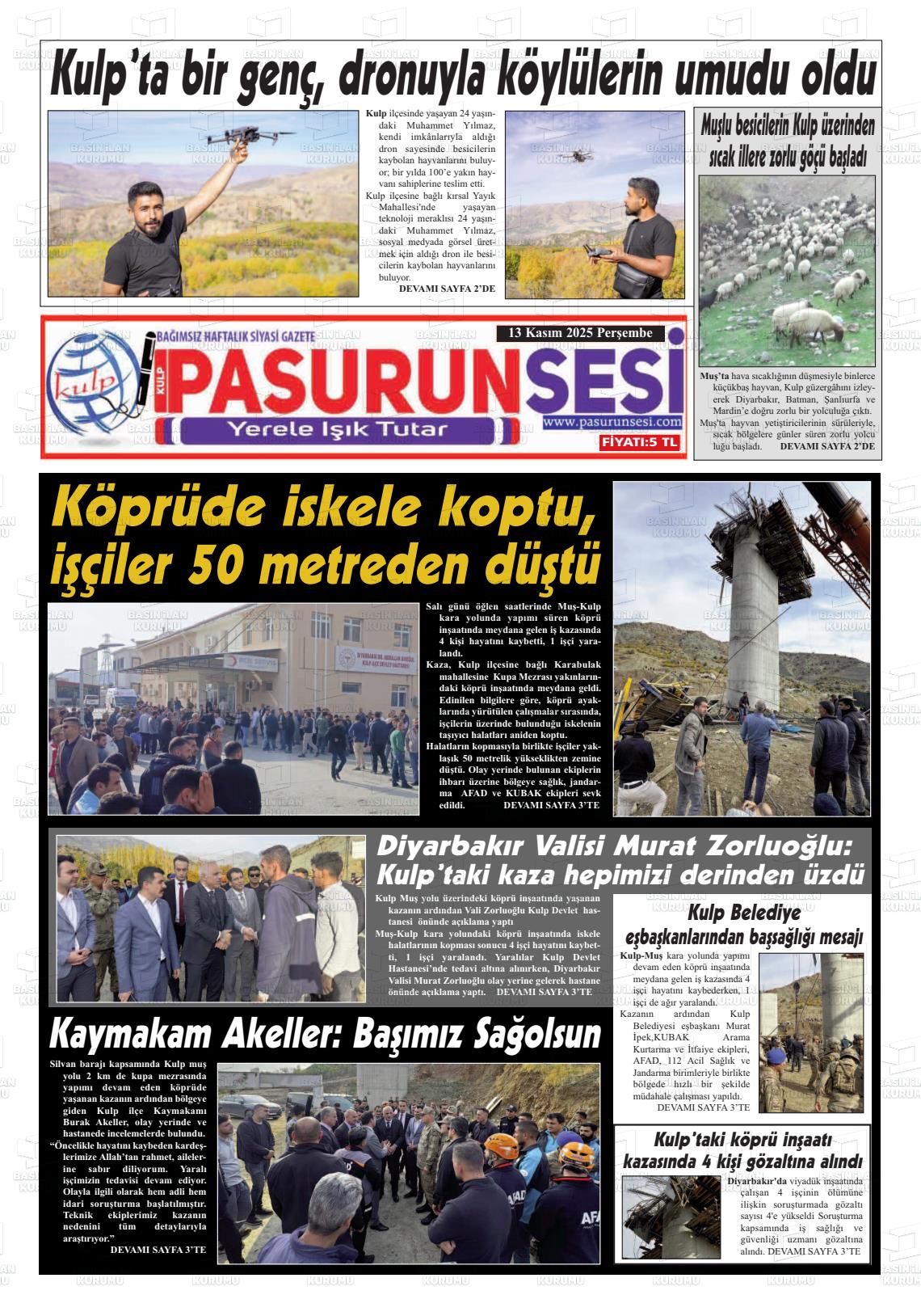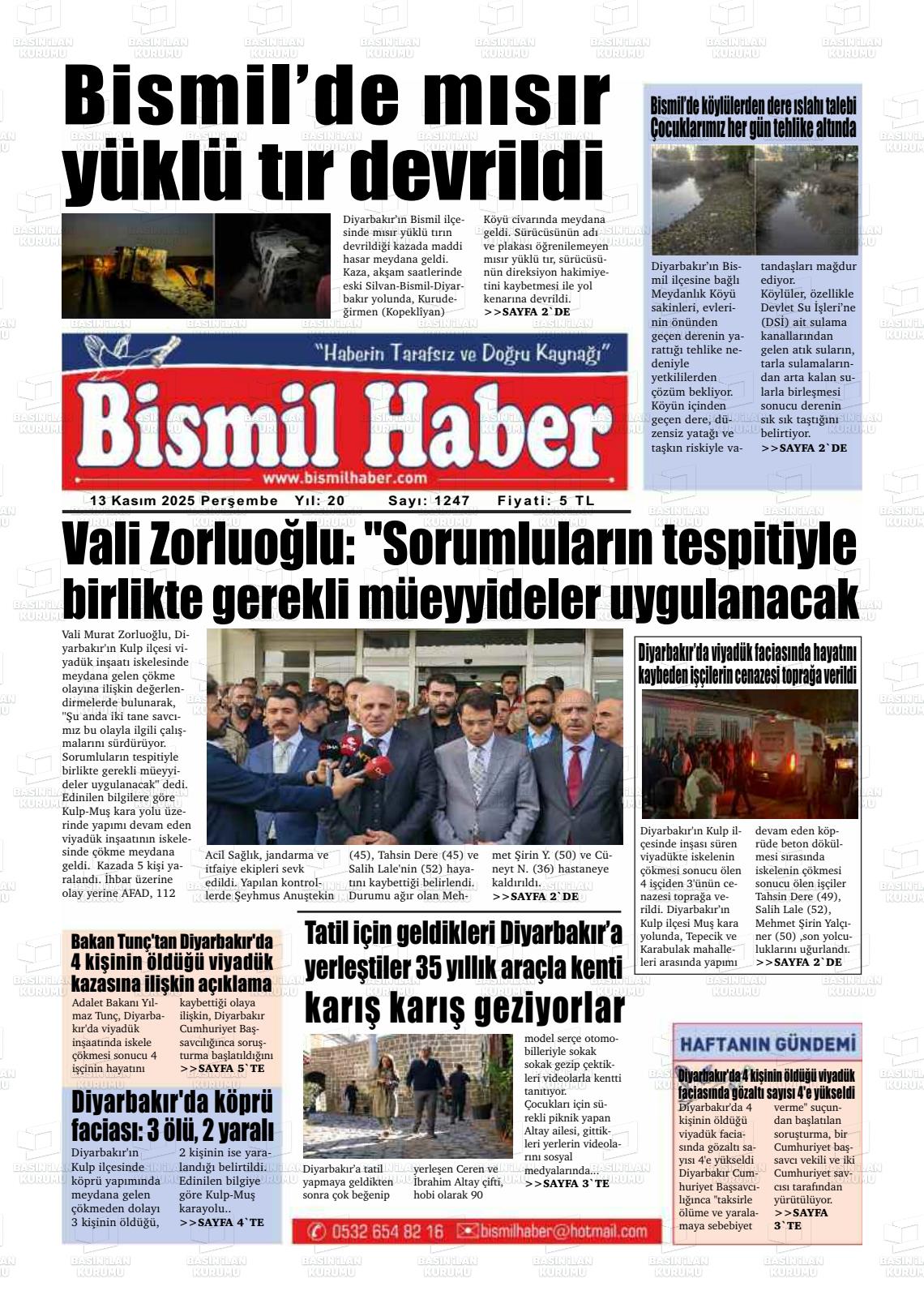 Dİyarbakır Yerel Gazeteleri 13 Kasım 2025, Perşembe Günü Manşeti
