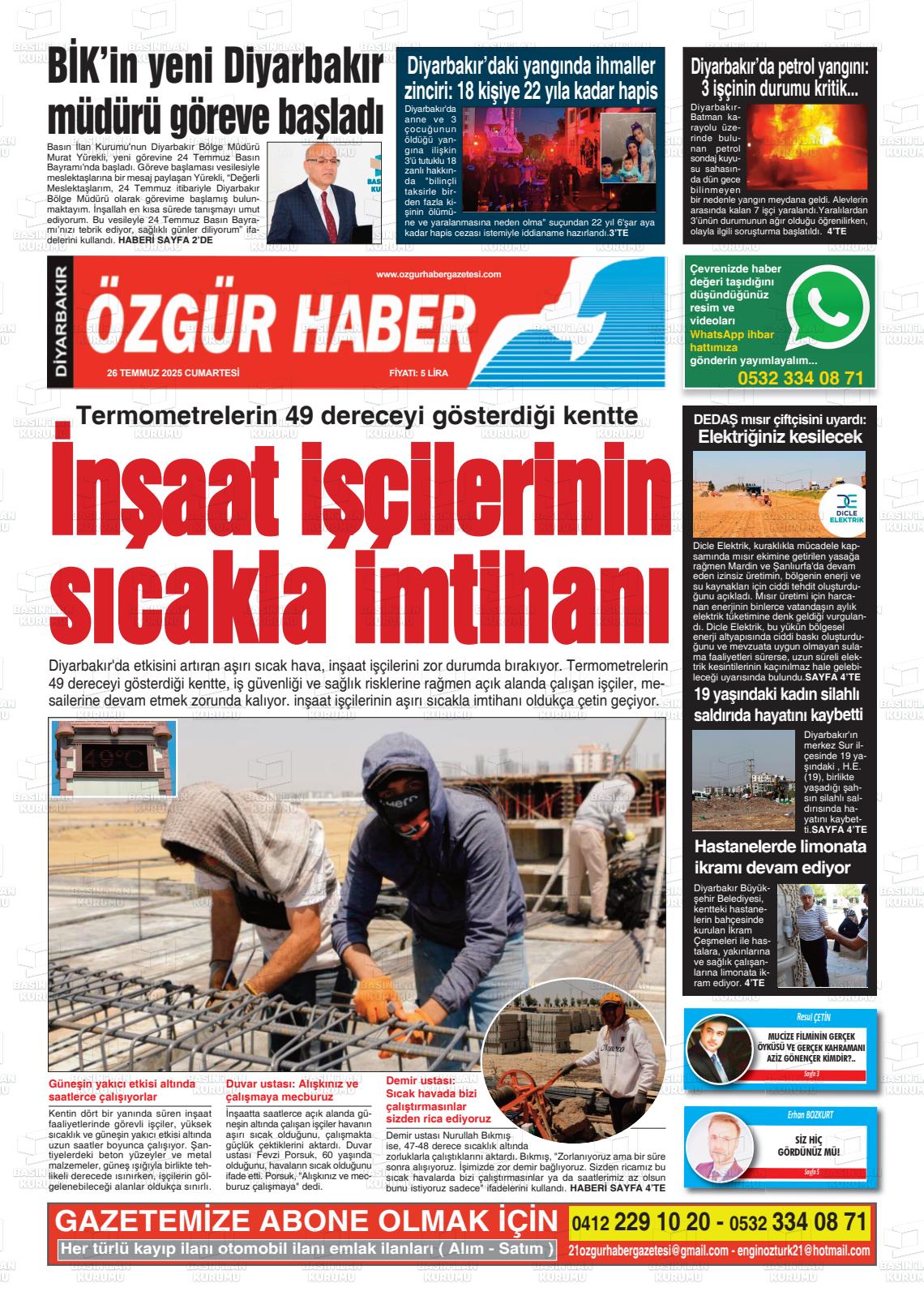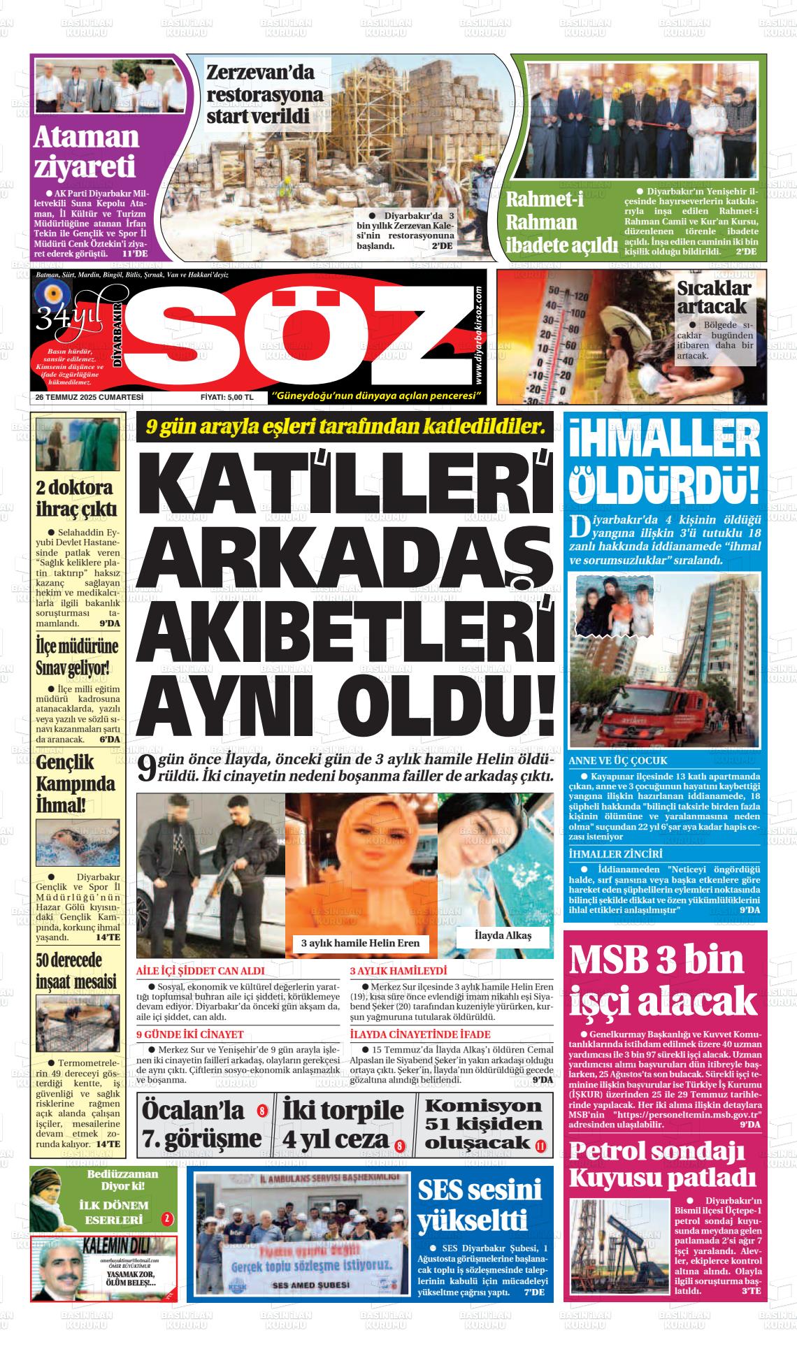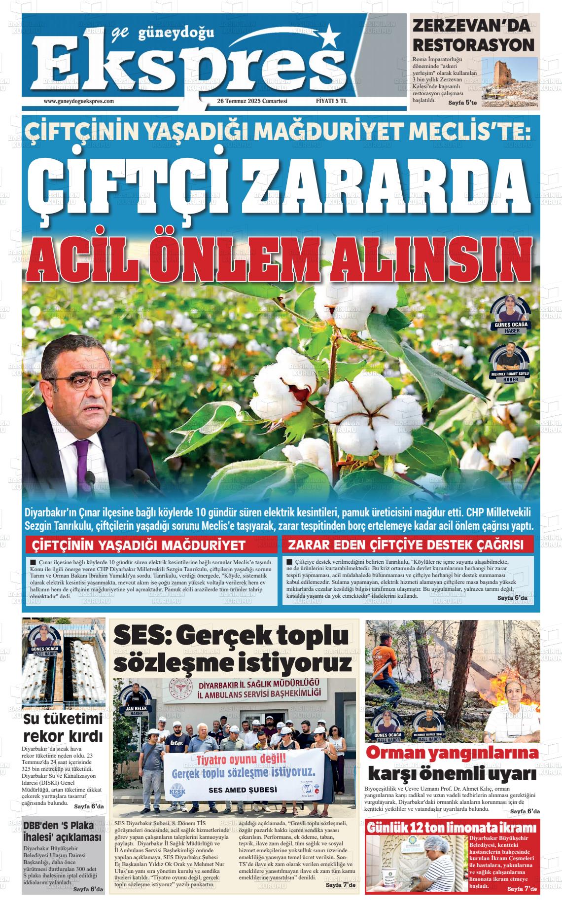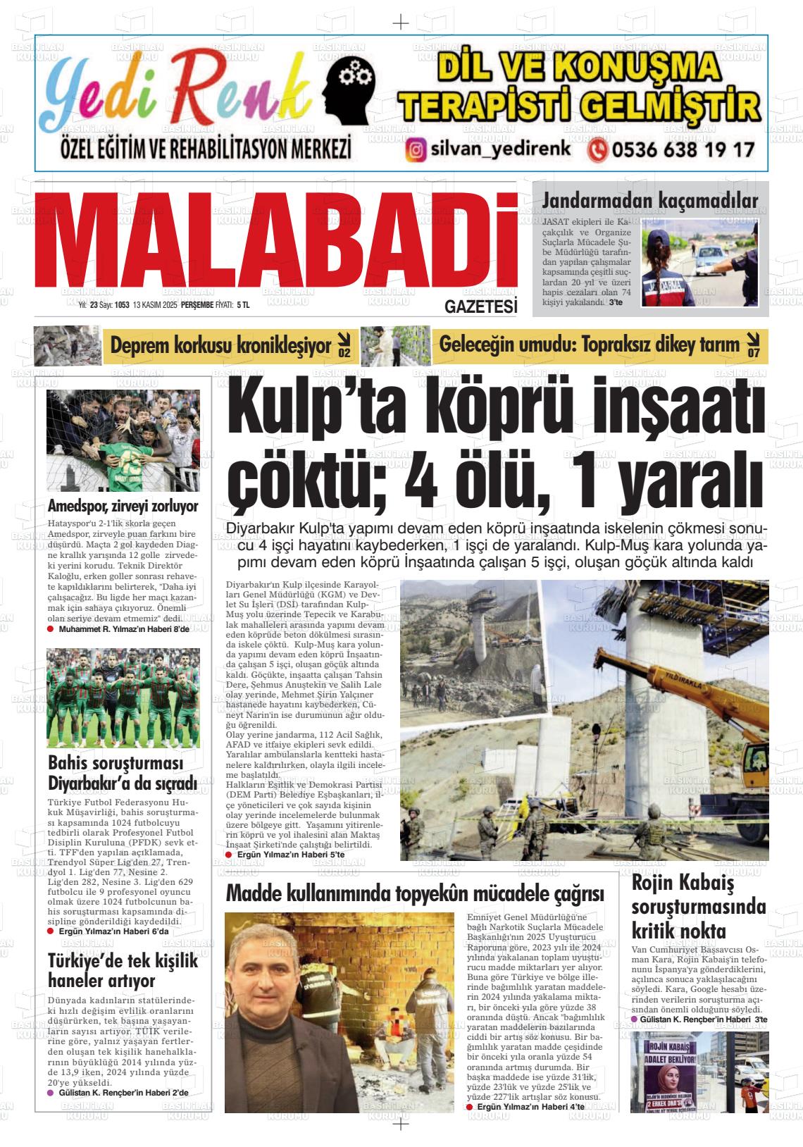 Dİyarbakır Yerel Gazeteleri 13 Kasım 2025, Perşembe Günü Manşeti