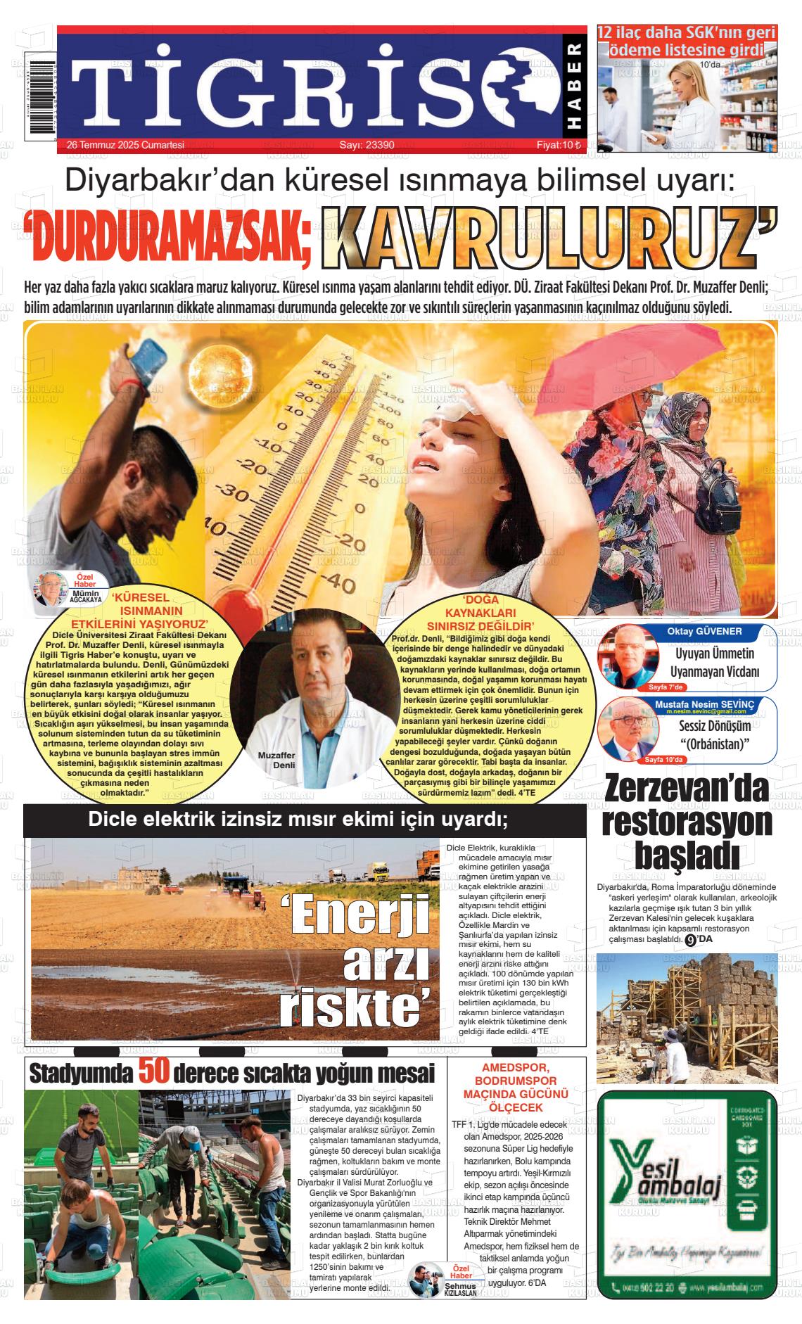 Dİyarbakır Yerel Gazeteleri 31 Ocak 2026, Cumartesi Günü Manşeti