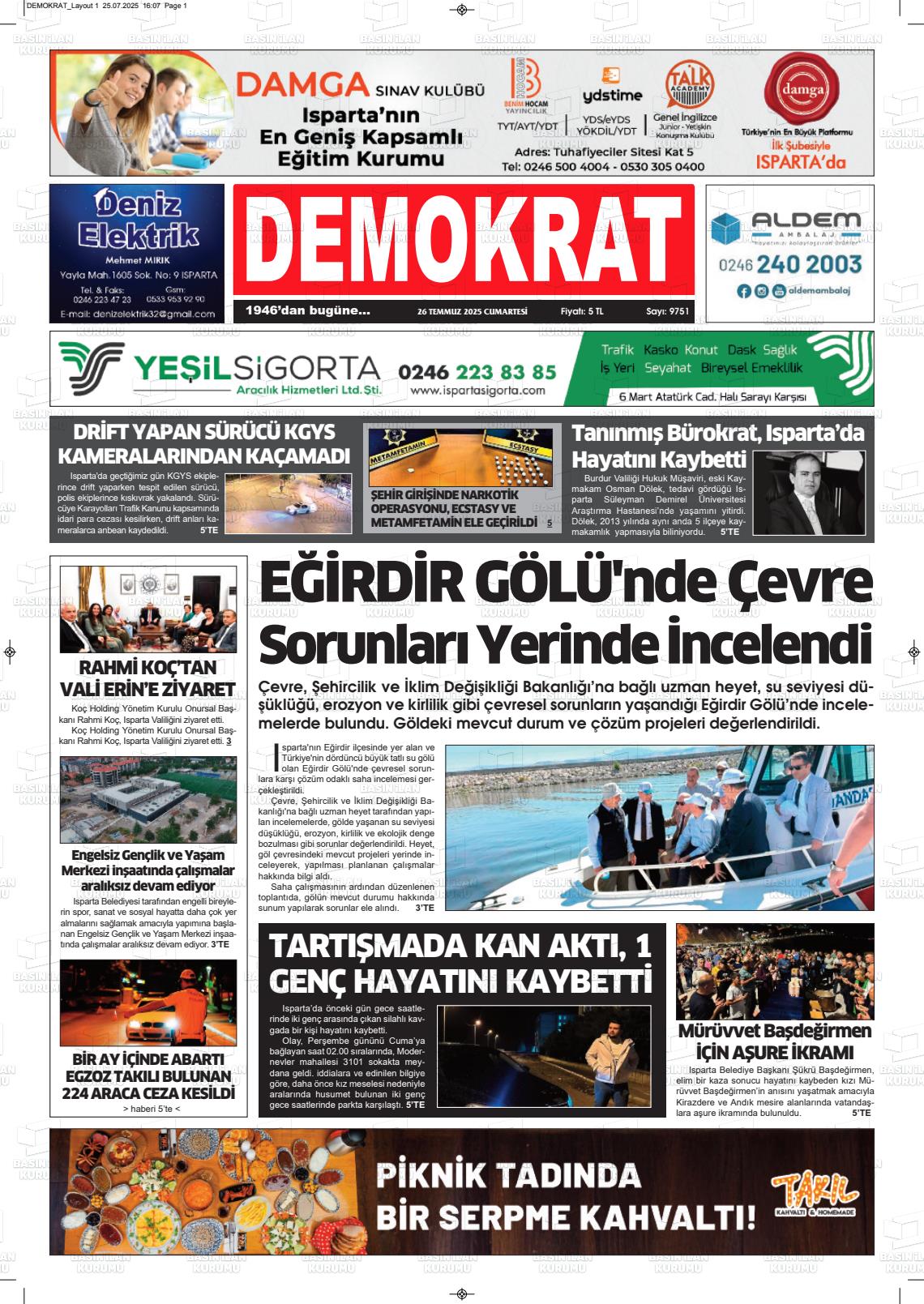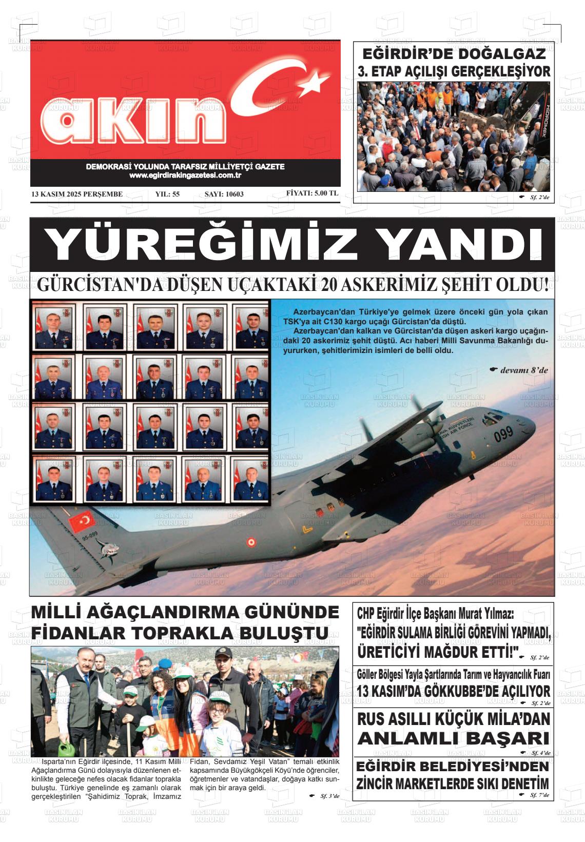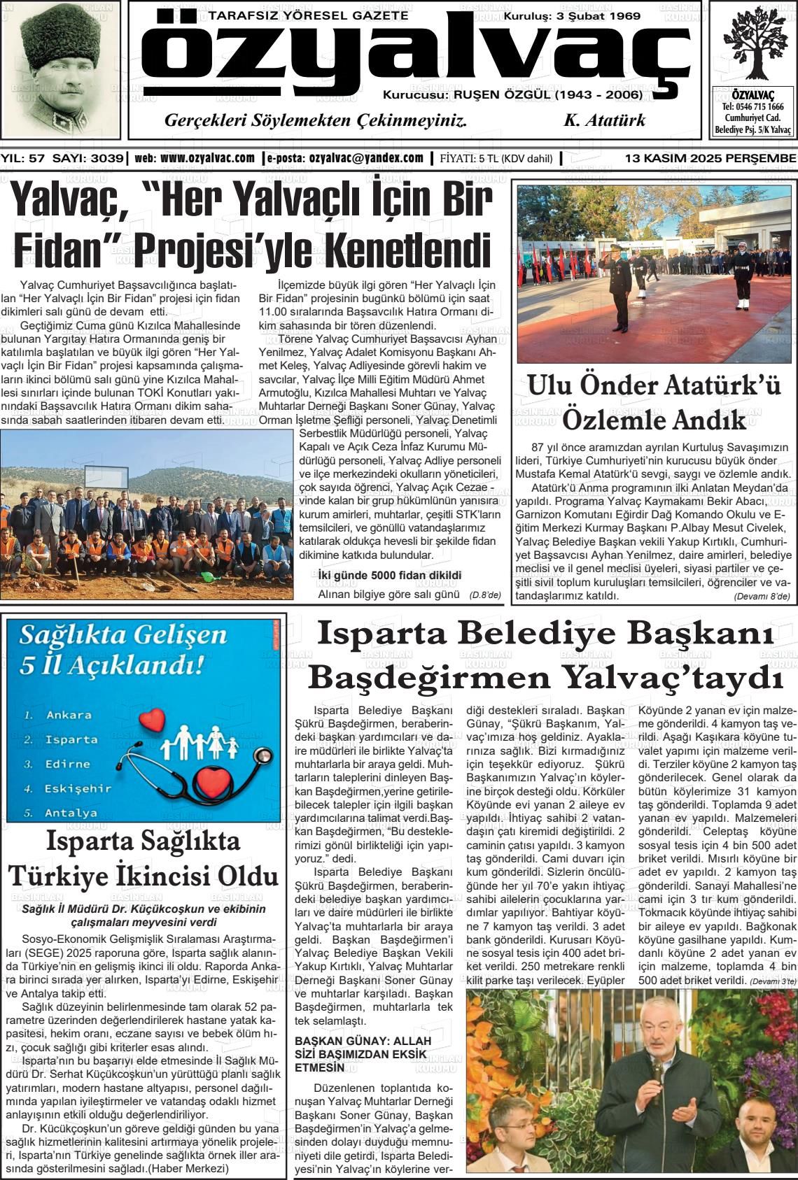 Isparta Yerel Gazeteleri 13 Kasım 2025, Perşembe Günü Manşeti