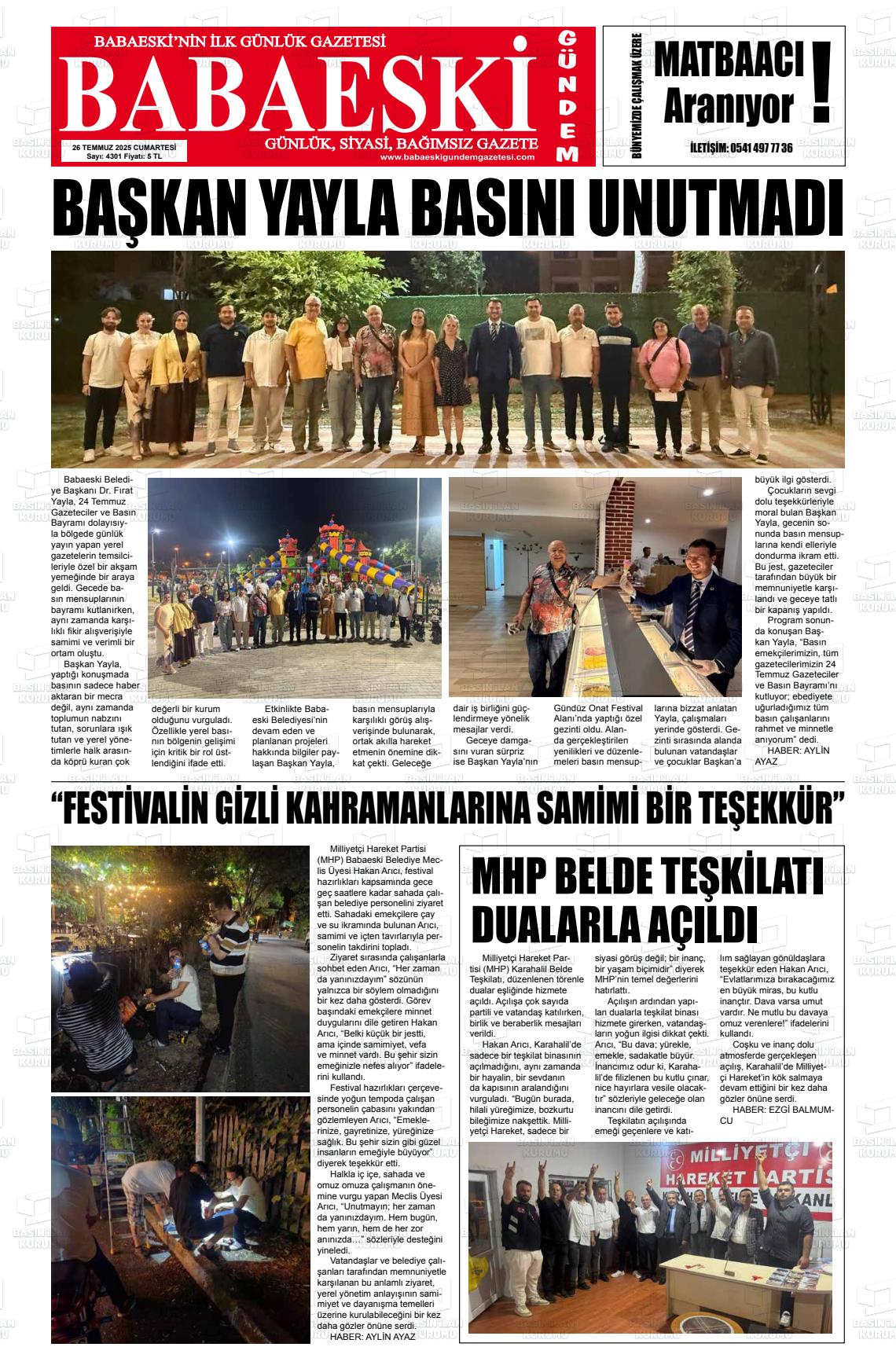 Kırklarelİ Yerel Gazeteleri 13 Kasım 2025, Perşembe Günü Manşeti