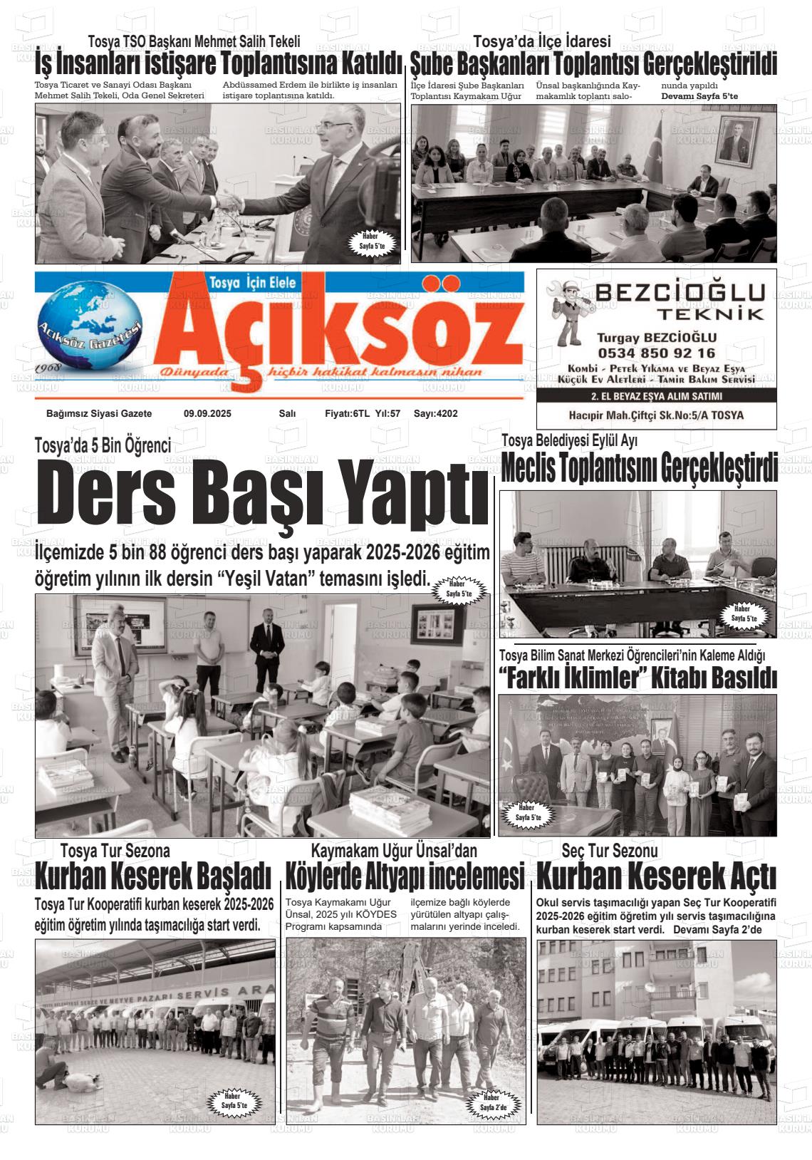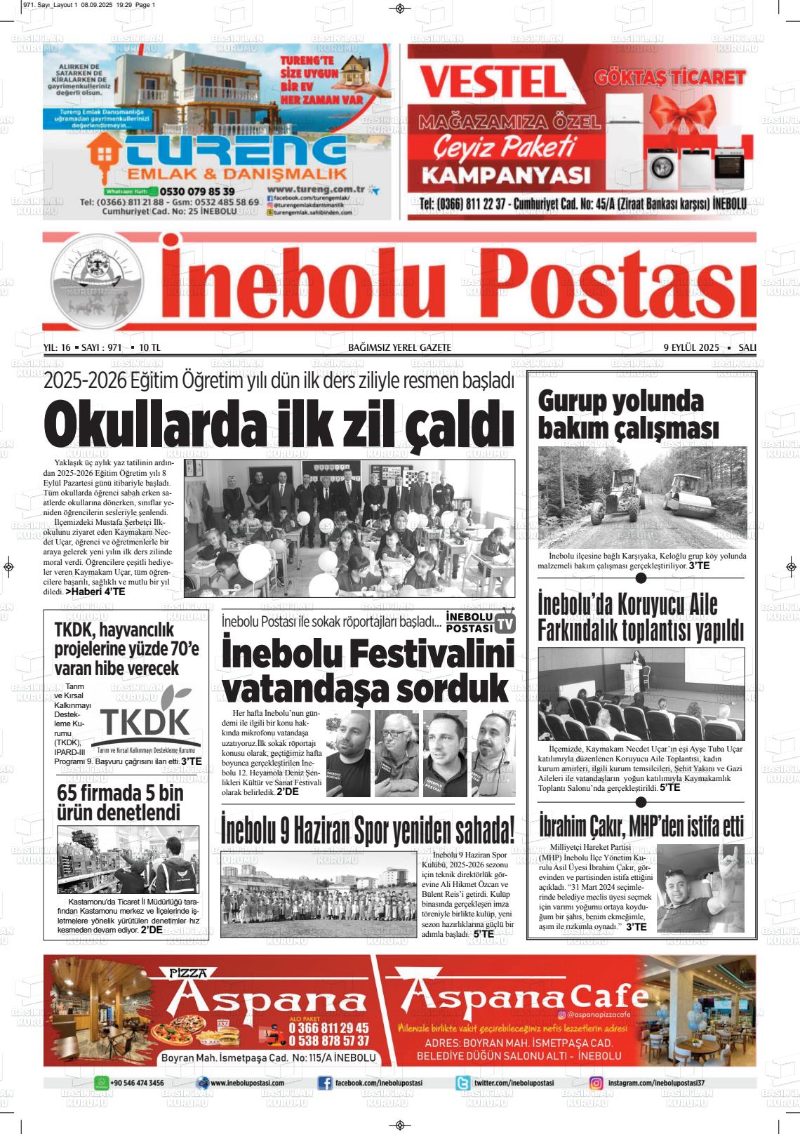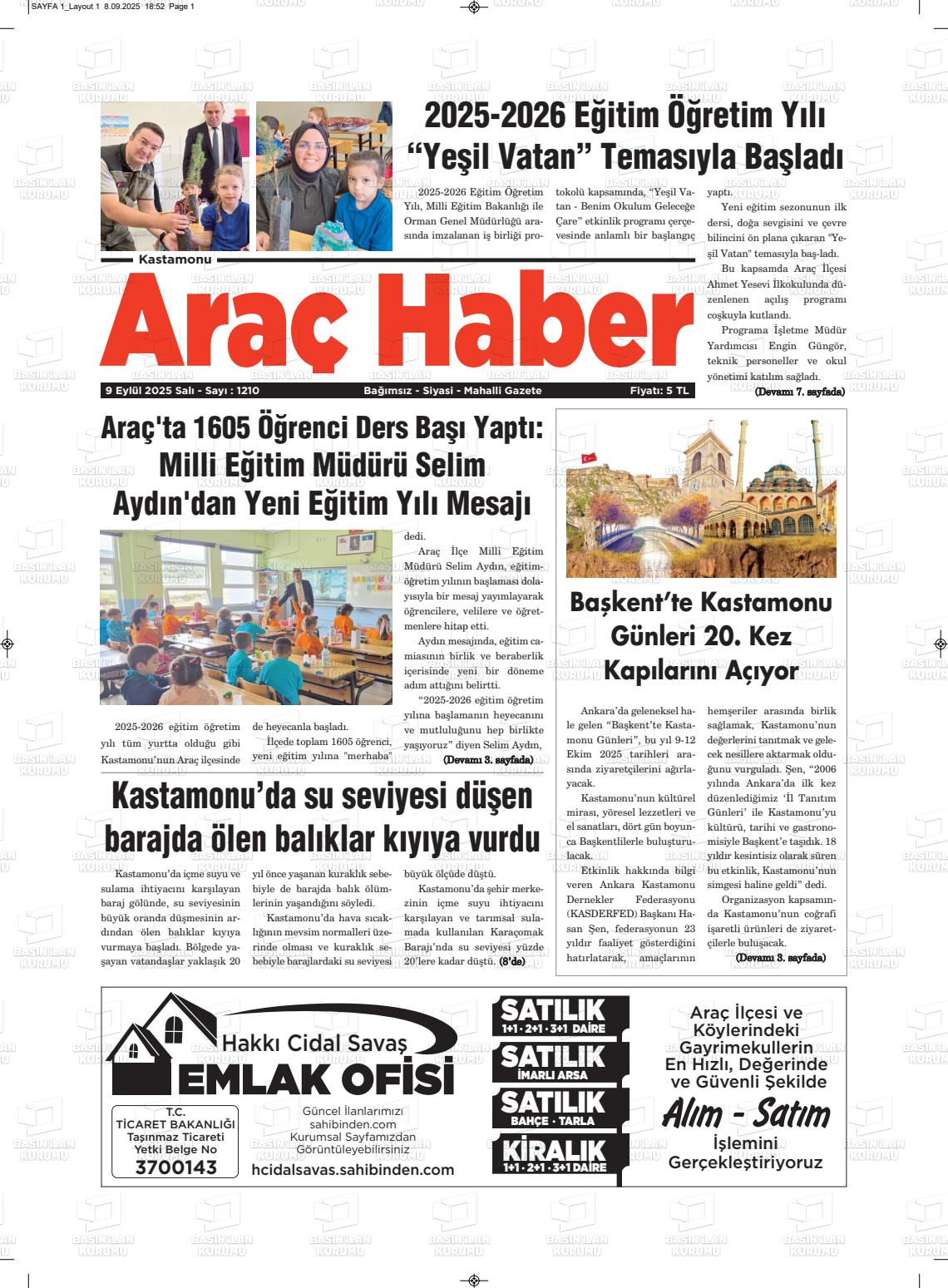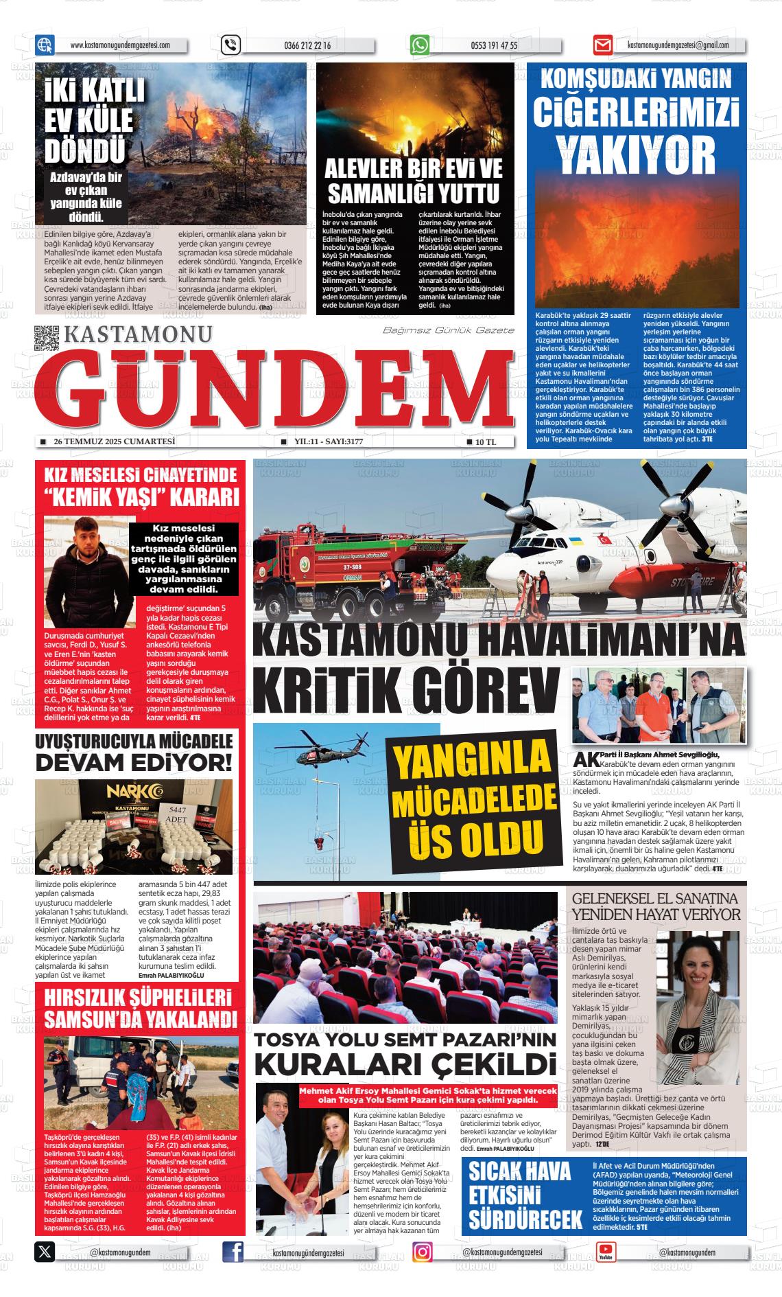 Kastamonu Yerel Gazeteleri 13 Kasım 2025, Perşembe Günü Manşeti