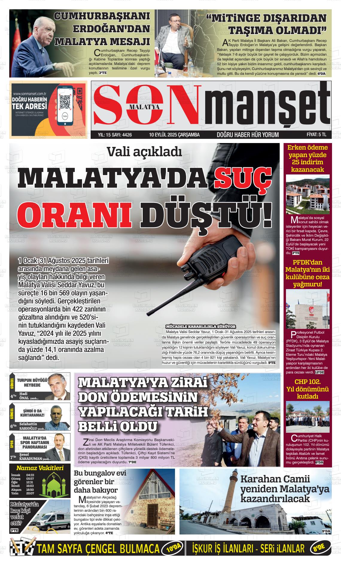 Malatya Yerel Gazeteleri 30 Ocak 2026, Cuma Günü Manşeti