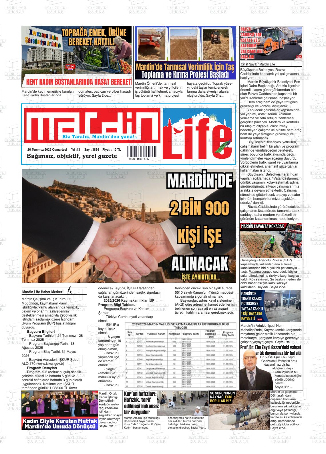 Mardİn Yerel Gazeteleri 30 Ocak 2026, Cuma Günü Manşeti