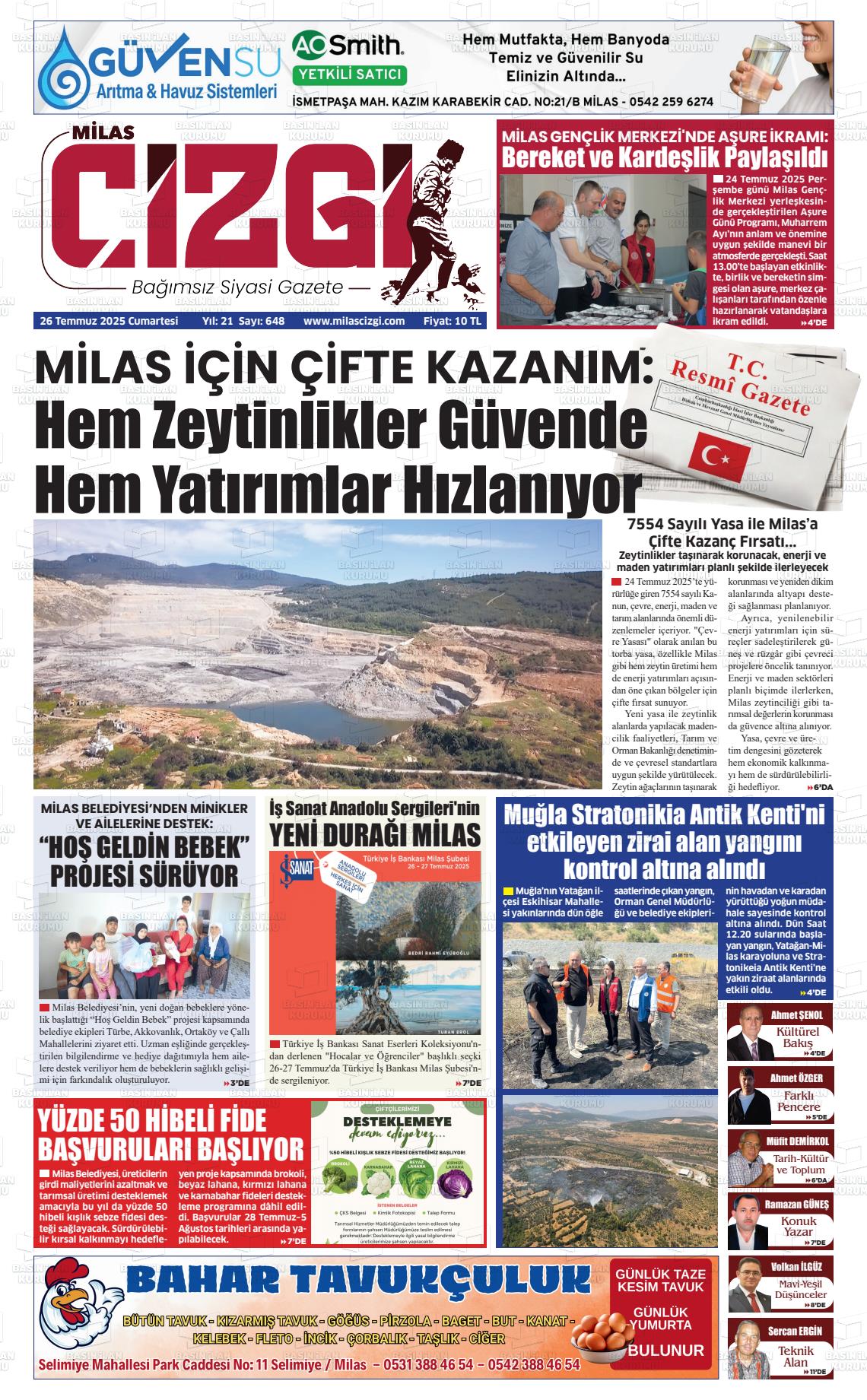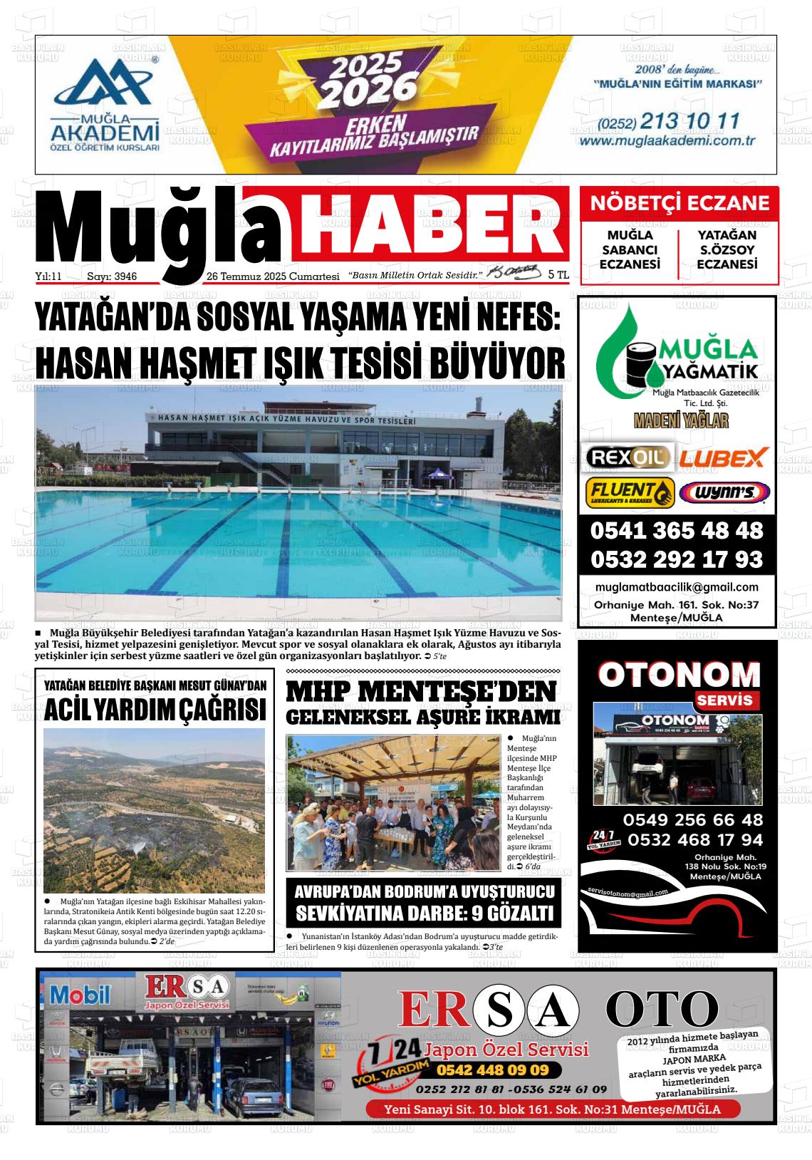 Muğla Yerel Gazeteleri 13 Kasım 2025, Perşembe Günü Manşeti