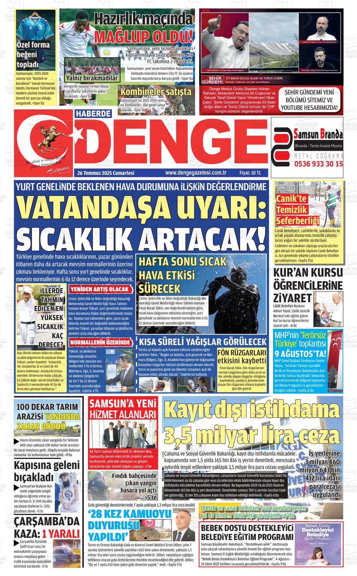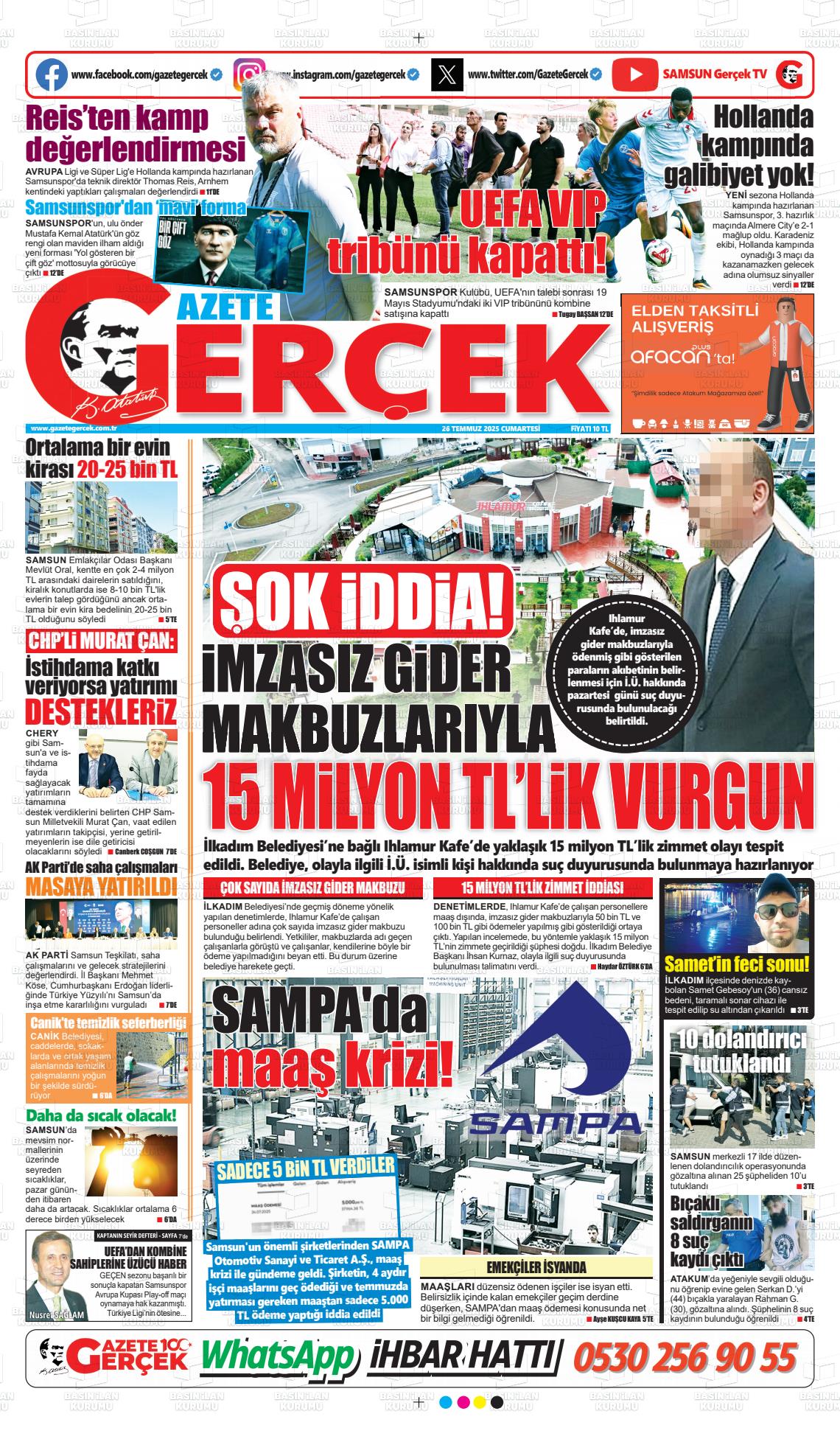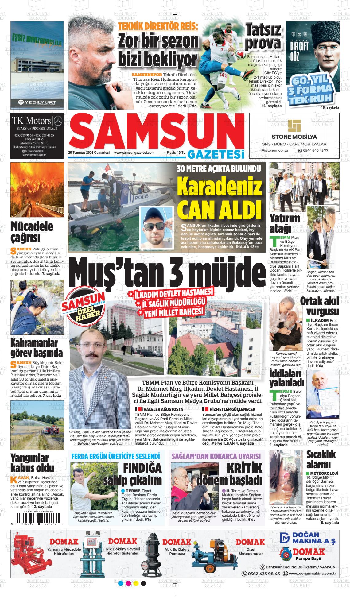 Samsun Yerel Gazeteleri 29 Ocak 2026, Perşembe Günü Manşeti