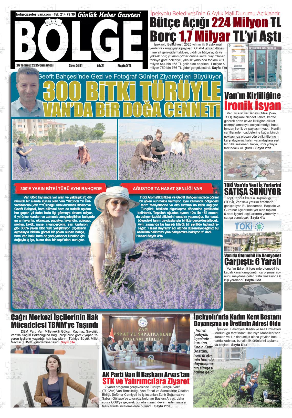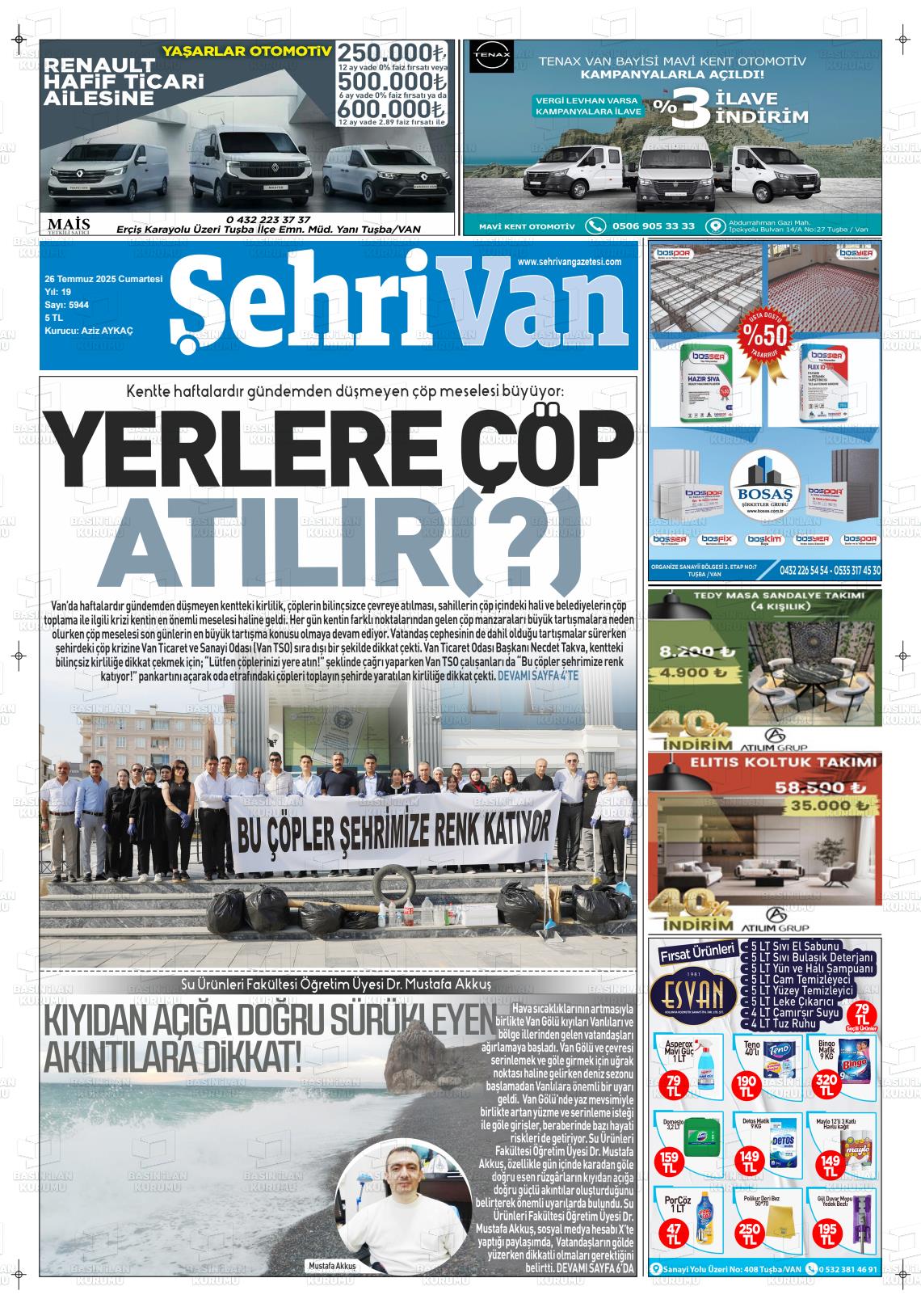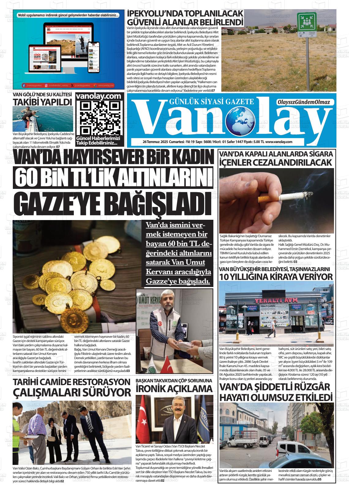 Van Yerel Gazeteleri 29 Ocak 2026, Perşembe Günü Manşeti