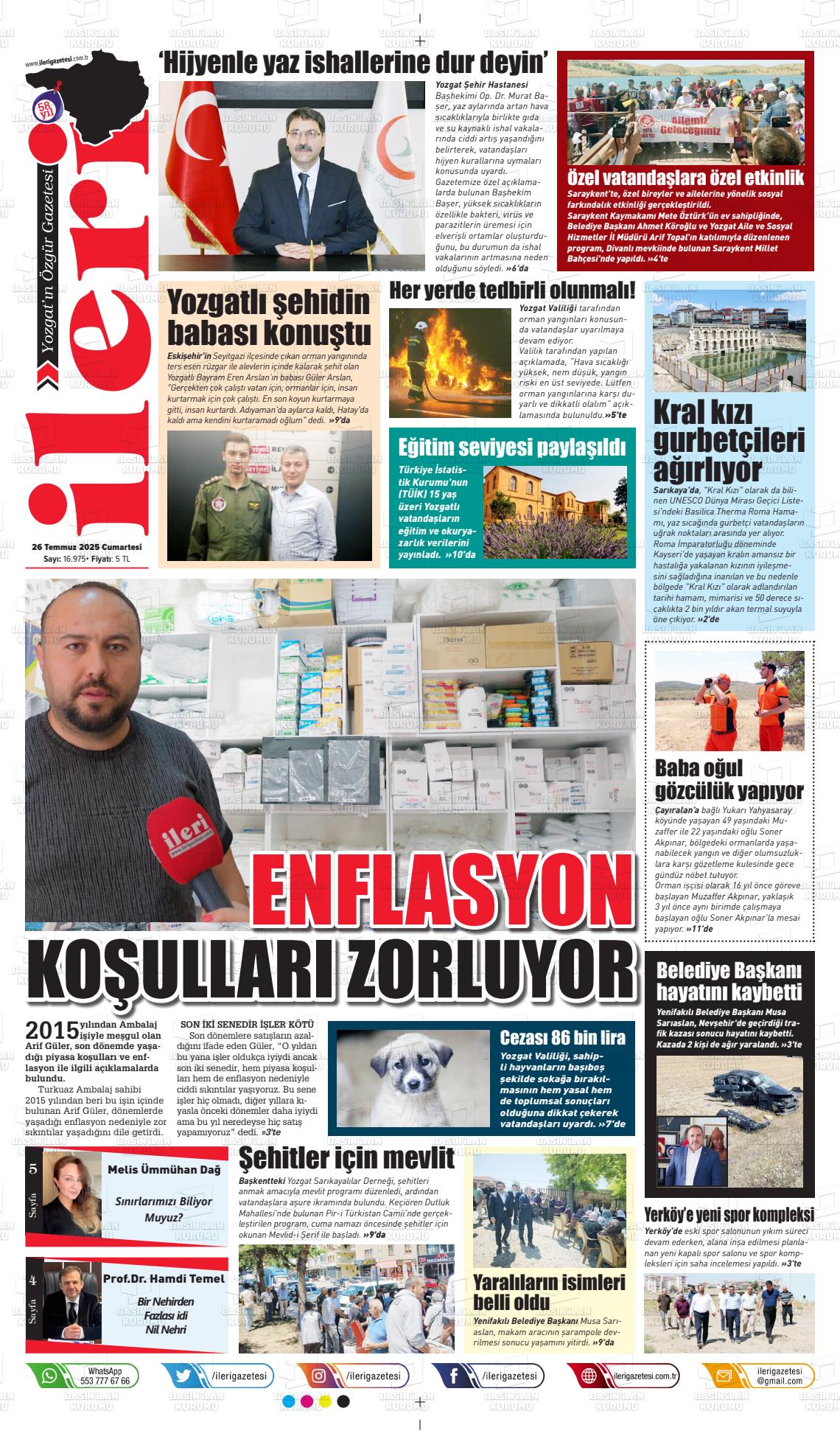 Yozgat Yerel Gazeteleri 13 Kasım 2025, Perşembe Günü Manşeti