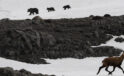 Boz ayıdan kaçan çengel boynuzlu dağ keçileri kamerada